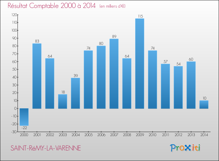 Le résultat comptable de la commune de Saint-Rémy-la-Varenne s'établissait ainsi à : + 10 000 € fin 2014.