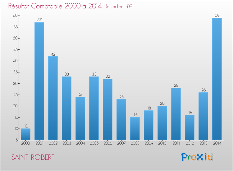 Le résultat comptable de la commune de Saint-Robert s'établissait ainsi à : + 59 000 € fin 2014.