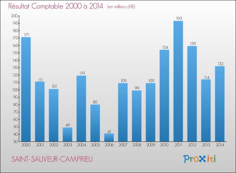 Le résultat comptable de la commune de Saint-Sauveur-Camprieu s'établissait ainsi à : + 132 000 € fin 2014.