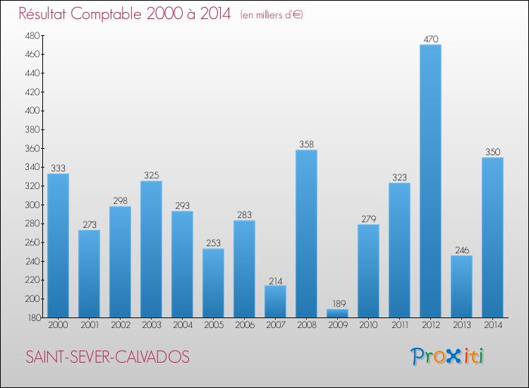 Le résultat comptable de la commune de Saint-Sever-Calvados s'établissait ainsi à : + 350 000 € fin 2014.