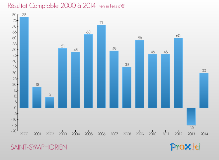 Evolution du résultat comptable pour SAINT-SYMPHORIEN de 2000 à 2014