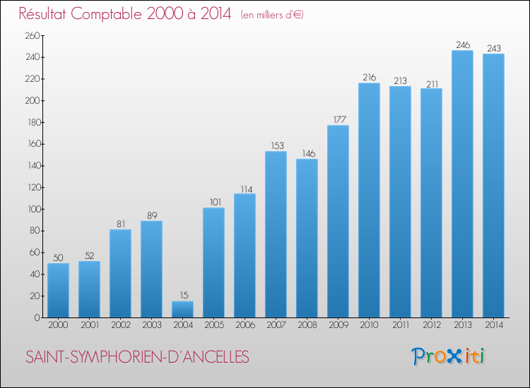 Le résultat comptable de la commune de Saint-Symphorien-d'Ancelles s'établissait ainsi à : + 243 000 € fin 2014.