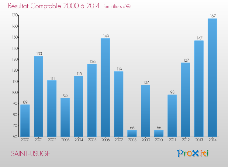 Le résultat comptable de la commune de Saint-Usuge s'établissait ainsi à : + 167 000 € fin 2014.
