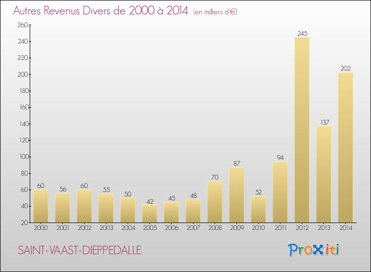 En 2014, à Saint-Vaast-Dieppedalle, ce budget est en augmentation de 31.13 % par rapport à 2013.