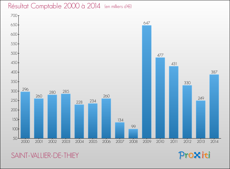 Le résultat comptable de la commune de Saint-Vallier-de-Thiey s'établissait ainsi à : + 387 000 € fin 2014.