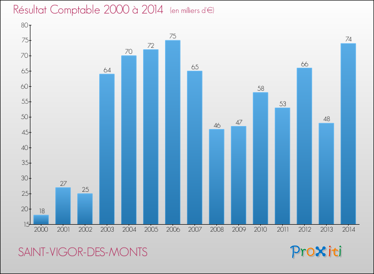 Le résultat comptable de la commune de Saint-Vigor-des-Monts s'établissait ainsi à : + 74 000 € fin 2014.