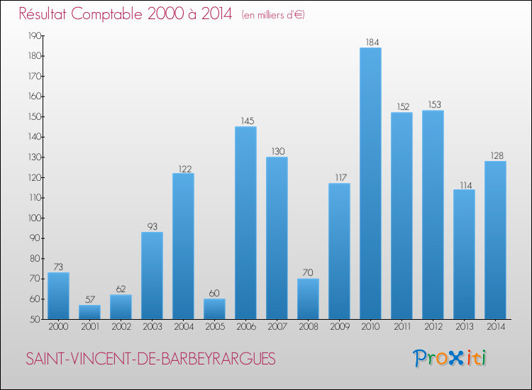Le résultat comptable de la commune de Saint-Vincent-de-Barbeyrargues s'établissait ainsi à : + 128 000 € fin 2014.