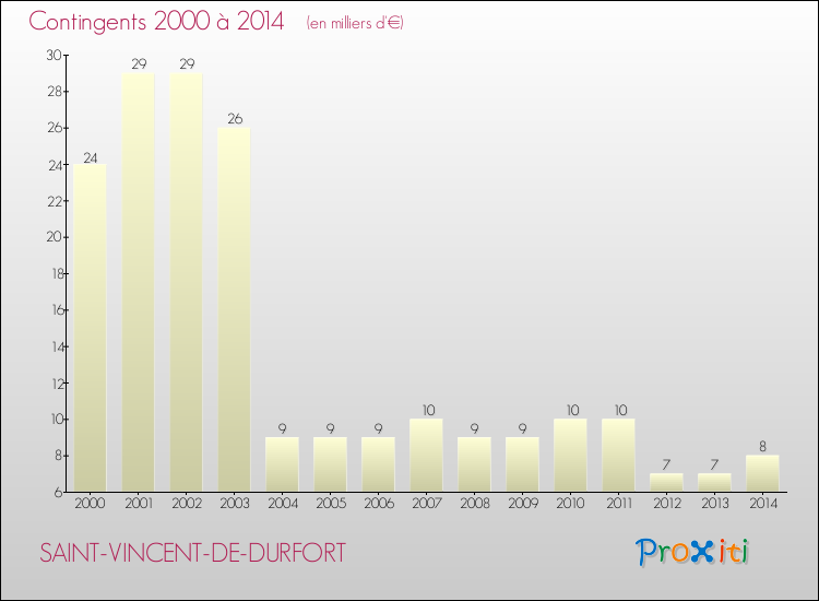 En 2014, à Saint-Vincent-de-Durfort, ce budget est en augmentation de 4.07 % par rapport à 2013.