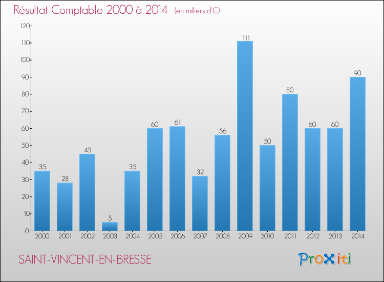 Le résultat comptable de la commune de Saint-Vincent-en-Bresse s'établissait ainsi à : + 90 000 € fin 2014.