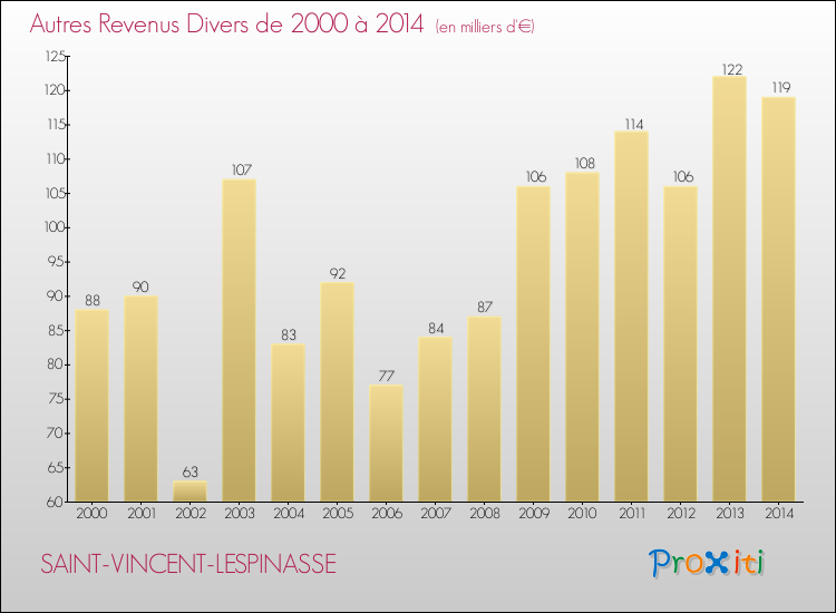 En 2014, à Saint-Vincent-Lespinasse, ce budget est en baisse de 2.67 % par rapport à 2013.