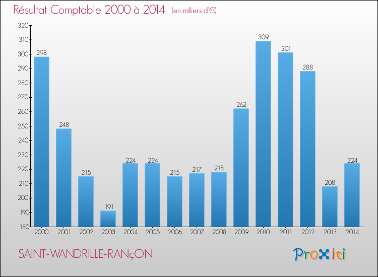 Le résultat comptable de la commune de Saint-Wandrille-Rançon s'établissait ainsi à : + 224 000 € fin 2014.