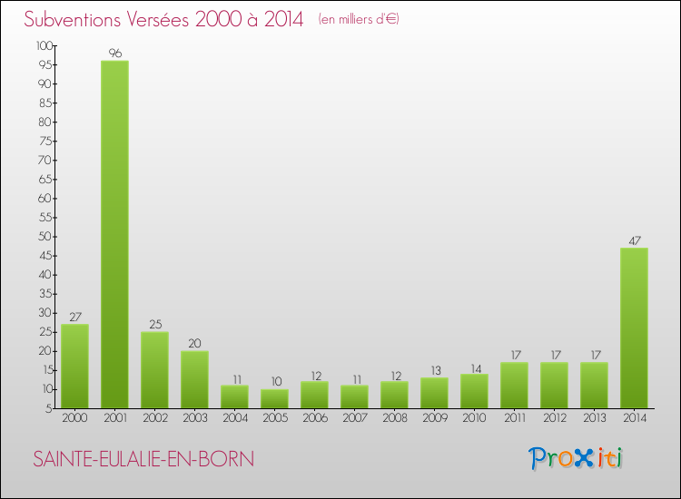 En 2014, à Sainte-Eulalie-en-Born, ce budget est en baisse de 0.77 % par rapport à 2013.