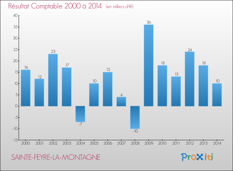 Le résultat comptable de la commune de Sainte-Feyre-la-Montagne s'établissait ainsi à : + 10 000 € fin 2014.