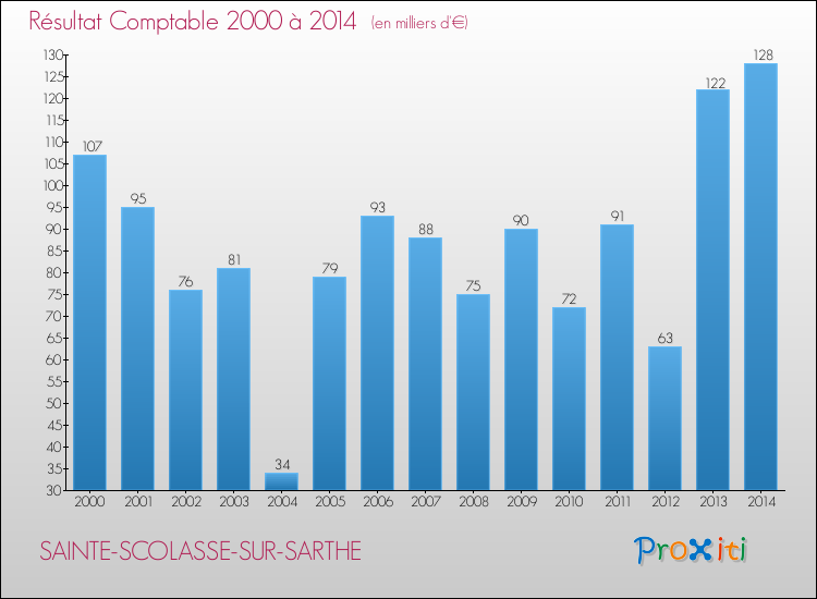 Le résultat comptable de la commune de Sainte-Scolasse-sur-Sarthe s'établissait ainsi à : + 128 000 € fin 2014.