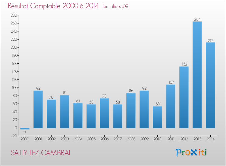 Le résultat comptable de la commune de Sailly-lez-Cambrai s'établissait ainsi à : + 212 000 € fin 2014.