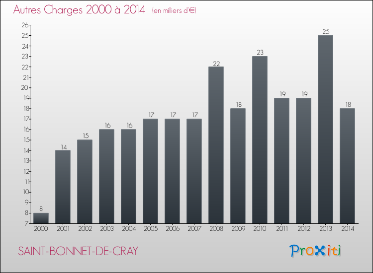 En 2014, à Saint-Bonnet-de-Cray, ce budget est en baisse de 4.76 % par rapport à 2013.