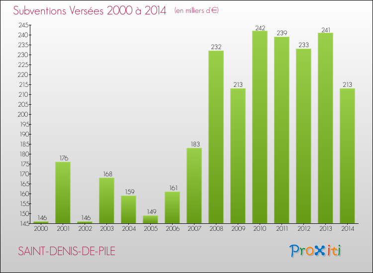 En 2014, à Saint-Denis-de-Pile, ce budget est en augmentation de 6.93 % par rapport à 2013.