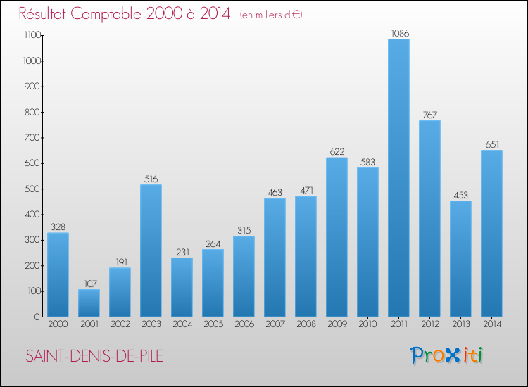 Le résultat comptable de la commune de Saint-Denis-de-Pile s'établissait ainsi à : + 651 000 € fin 2014.