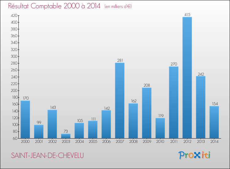 Le résultat comptable de la commune de Saint-Jean-de-Chevelu s'établissait ainsi à : + 154 000 € fin 2014.