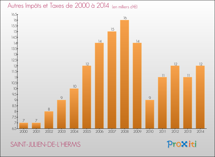 En 2014, à Saint-Julien-de-l'Herms, ce budget est en augmentation de 0.72 % par rapport à 2013.