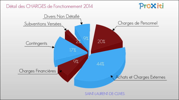 En 2014, les charges de fonctionnement de la commune de Saint-Laurent-de-Cuves étaient de : 265 000 €