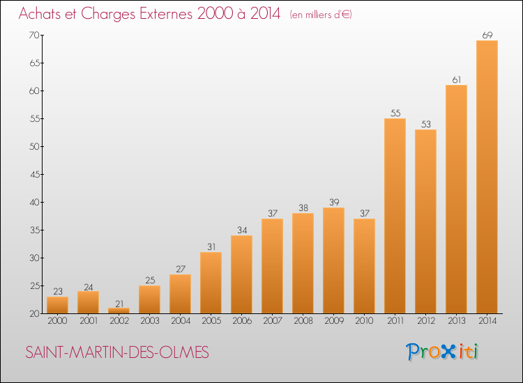 En 2014, à Saint-Martin-des-Olmes, ce budget est en augmentation de 30.67 % par rapport à 2013.