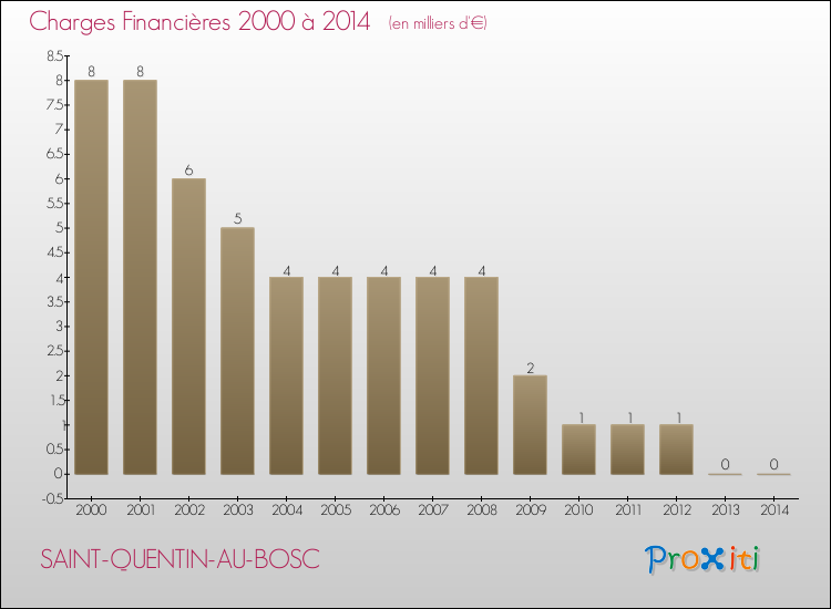 En 2014, à Saint-Quentin-au-Bosc, ce budget est en baisse de 18.68 % par rapport à 2013.