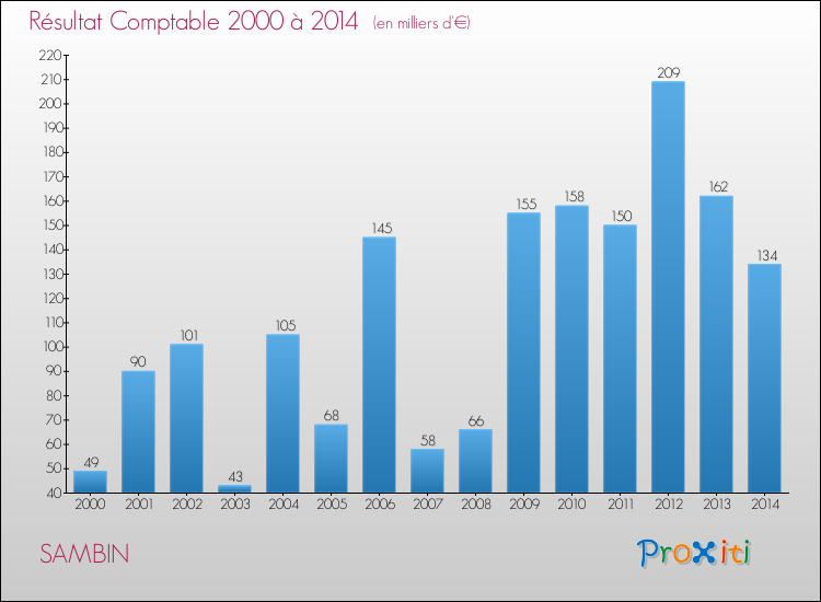 Le résultat comptable de la commune de Sambin s'établissait ainsi à : + 134 000 € fin 2014.
