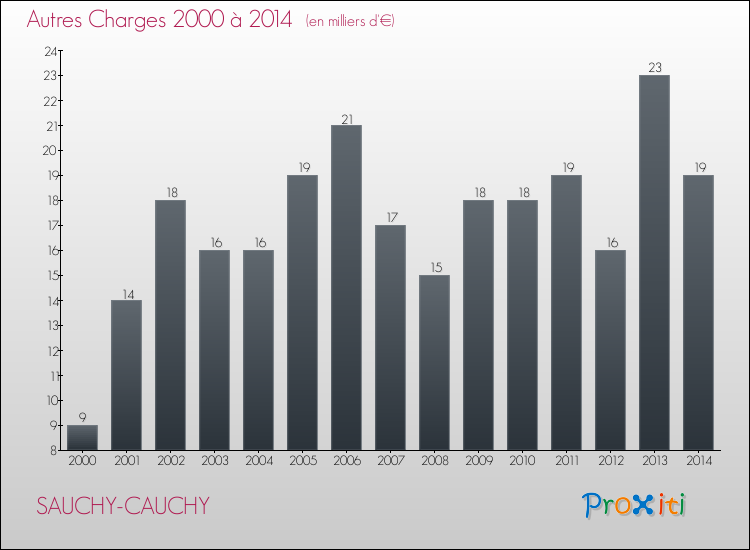 En 2014, à Sauchy-Cauchy, ce budget est en baisse de 10.16 % par rapport à 2013.