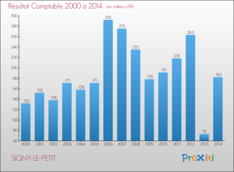 Le résultat comptable de la commune de Signy-le-Petit s'établissait ainsi à : + 182 000 € fin 2014.