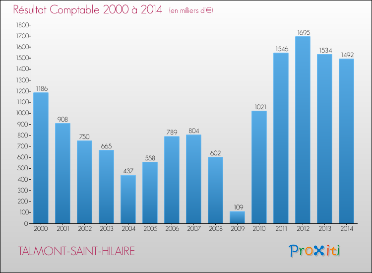 Le résultat comptable de la commune de Talmont-Saint-Hilaire s'établissait ainsi à : + 1 492 000 € fin 2014.