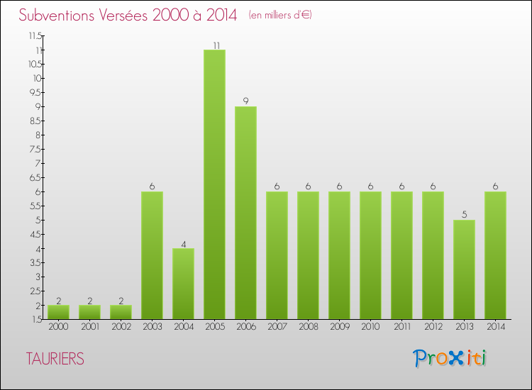 En 2014, à Tauriers, ce budget est en baisse de 11.11 % par rapport à 2013.