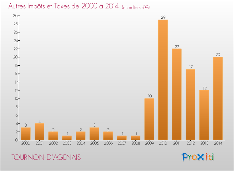 En 2014, à Tournon-d'Agenais, ce budget est en baisse de 6.99 % par rapport à 2013.