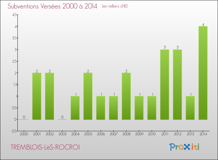 En 2014, à Tremblois-lès-Rocroi, ce budget est en augmentation de 35.29 % par rapport à 2013.