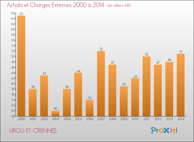 En 2014, à Urou-et-Crennes, ce budget est en baisse de 15.29 % par rapport à 2013.