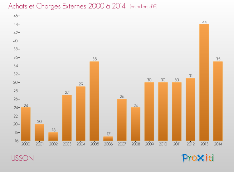 En 2014, à Usson, ce budget est en baisse de 40.14 % par rapport à 2013.