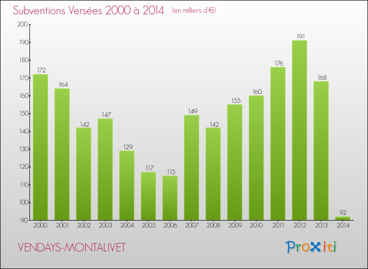En 2014, à Vendays-Montalivet, ce budget est en baisse de 2.14 % par rapport à 2013.