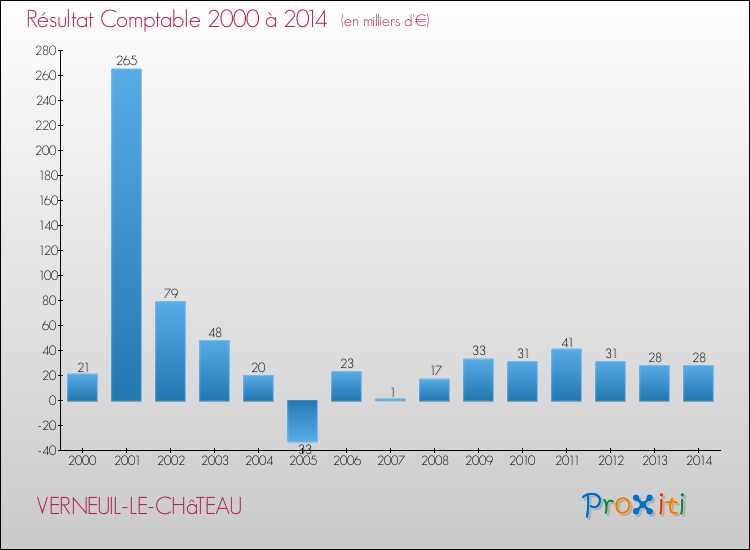 Le résultat comptable de la commune de Verneuil-le-Château s'établissait ainsi à : + 28 000 € fin 2014.