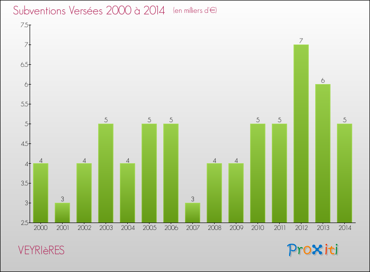 En 2014, à Veyrières, ce budget est en baisse de 6.09 % par rapport à 2013.