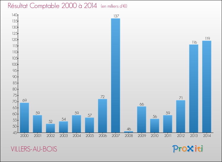 Le résultat comptable de la commune de Villers-au-Bois s'établissait ainsi à : + 119 000 € fin 2014.