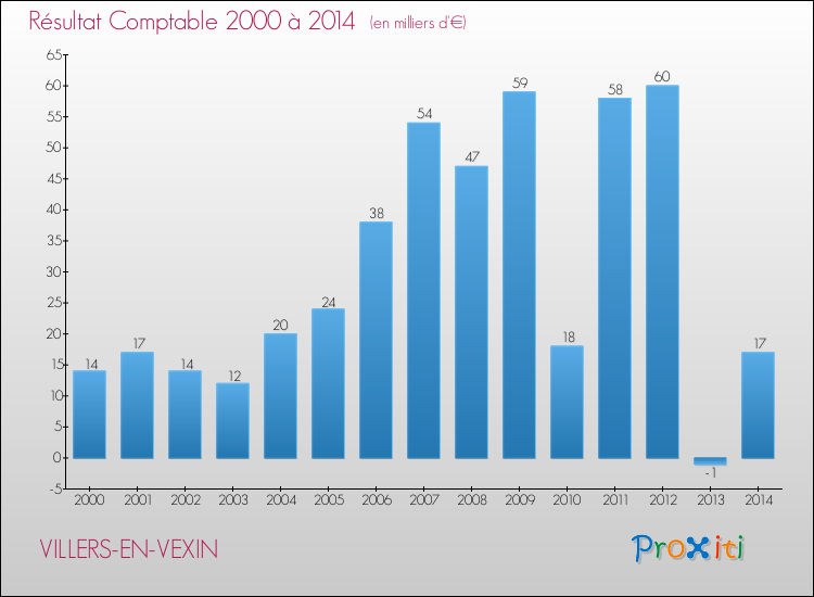 Le résultat comptable de la commune de Villers-en-Vexin s'établissait ainsi à : + 17 000 € fin 2014.