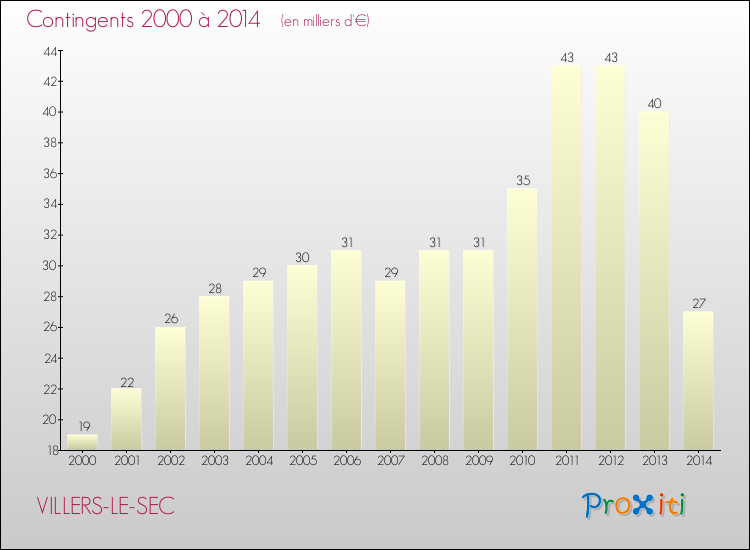 En 2014, à Villers-le-Sec, ce budget est en baisse de 14.55 % par rapport à 2013.