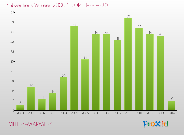 En 2014, à Villers-Marmery, ce budget est en baisse de 34.79 % par rapport à 2013.