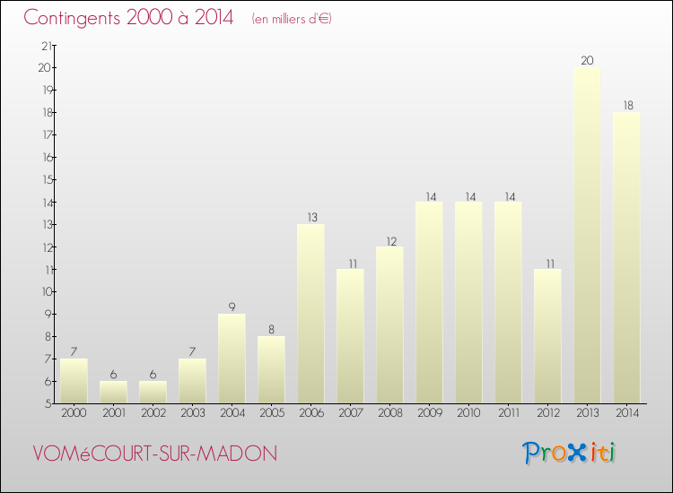 En 2014, à Vomécourt-sur-Madon, ce budget est en baisse de 12.96 % par rapport à 2013.