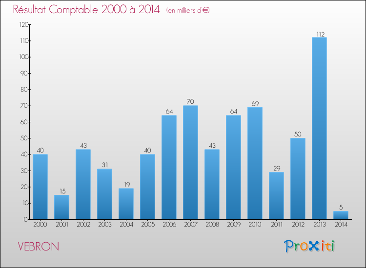 Le résultat comptable de la commune de Vebron s'établissait ainsi à : + 5 000 € fin 2014.