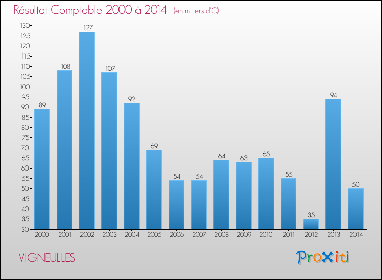 Le résultat comptable de la commune de Vigneulles s'établissait ainsi à : + 50 000 € fin 2014.