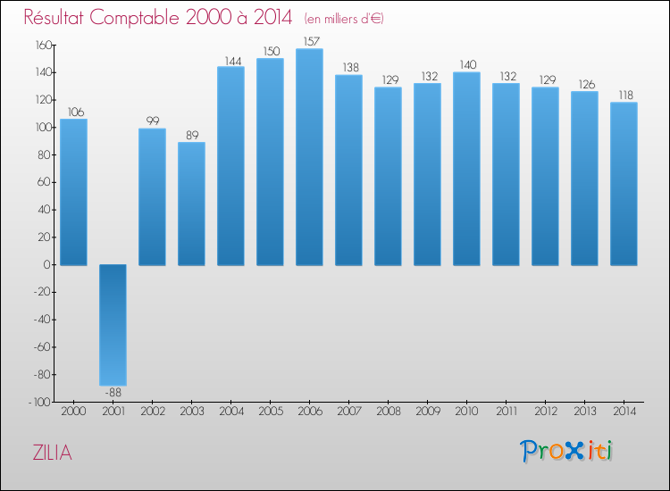Le résultat comptable de la commune de Zilia s'établissait ainsi à : + 118 000 € fin 2014.