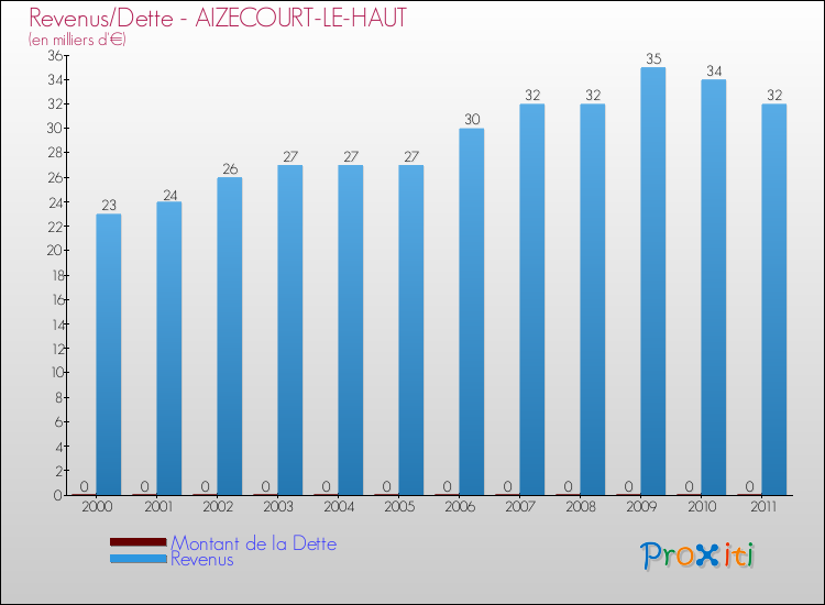 Comparaison Revenus/Dette de Aizecourt-le-Haut (de 2000 à 2011)
