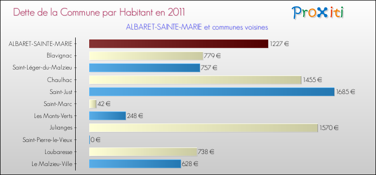 Par rapport aux 564 habitants de Albaret-Sainte-Marie, en 2011 le poids de cette dette représente 1227 € par habitant.