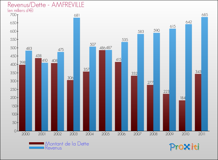 Comparaison Revenus/Dette de Amfreville (de 2000 à 2011)